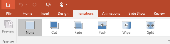 Set up how your slides change from one to the next on the Transitions tab. Find a gallery of the possible transitions in the Transition to This Slide group – click More