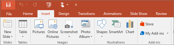 Here’s a look at what you’ll find in each of the PowerPoint ribbon tabs.