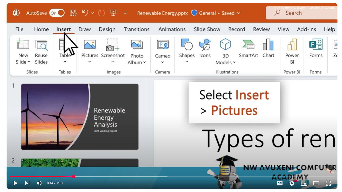 How to inset a Picture and Inset a New Slide on Power PointOn the Design tab, you can add a theme or color scheme, or format the slide background.